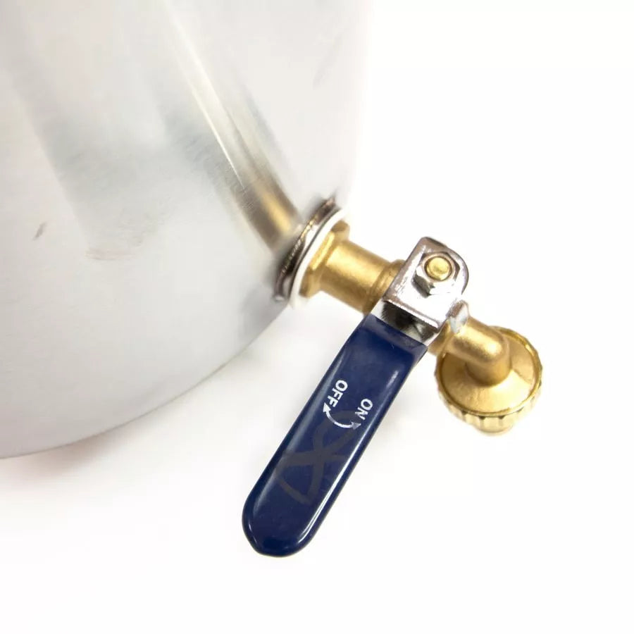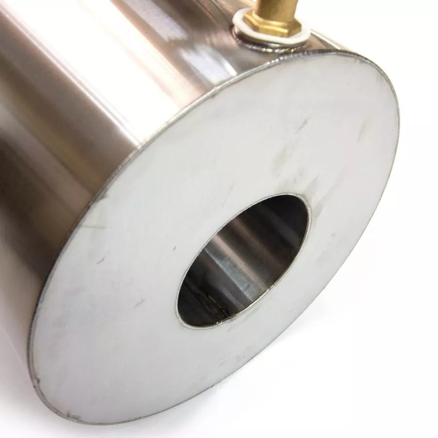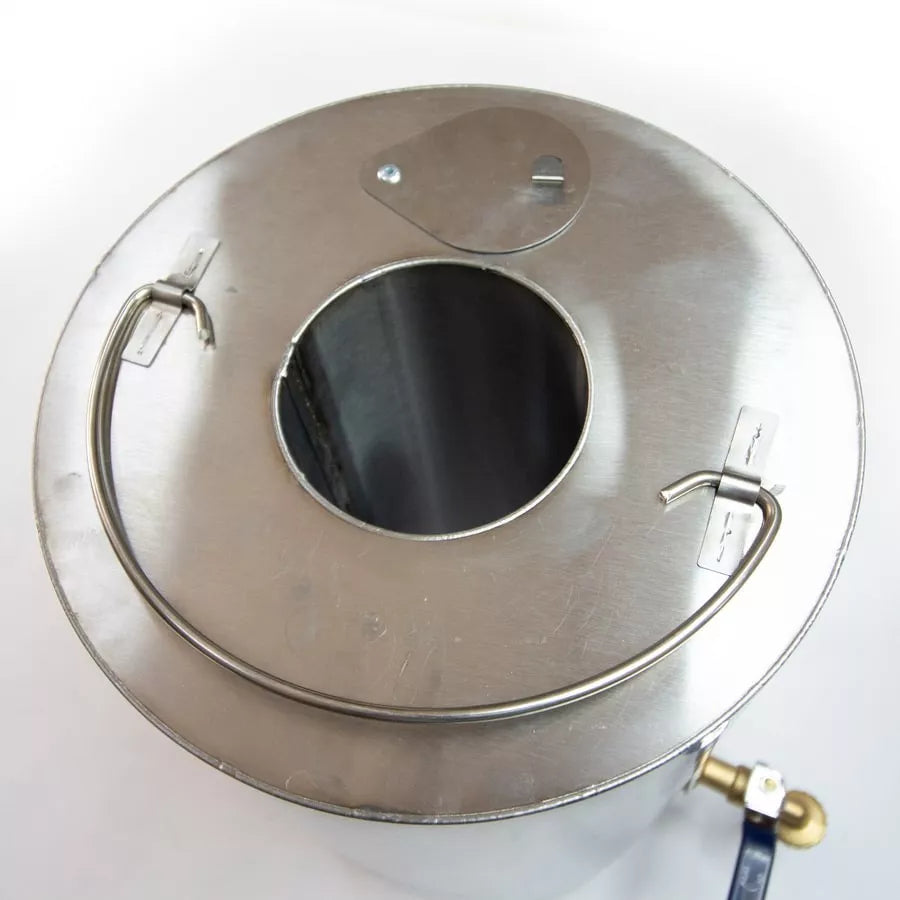 ストーブに連結して使用します。あらかじめ水を入れておいて火入れすると煙突の熱で自動的に温まり、コックをひねるとお湯が出てくるという仕組みです。乾燥ヴィヒタを戻したり、軽くお湯を浴びたいといった時に重宝するアイテムです。